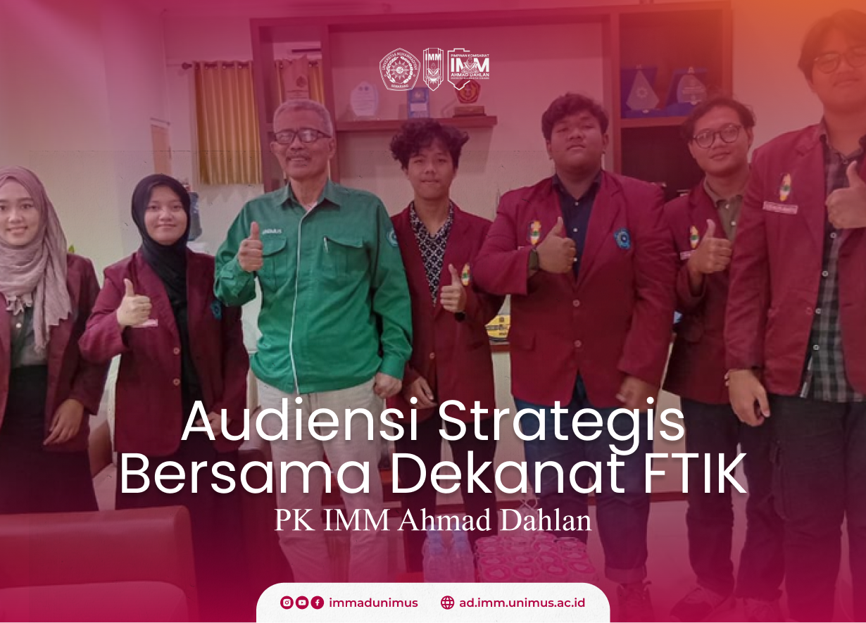 SEMARANG – Pimpinan Komisariat (PK) Ikatan Mahasiswa Muhammadiyah (IMM) Ahmad Dahlan Universitas Muhammadiyah Semarang (Unimus) menggelar audiensi strategis bersama Dekan Fakultas Teknik dan Ilmu Komputer (FTIK), Rabu (14/1/2026). Pertemuan yang berlangsung di Ruang Dekan Lantai 7 Gedung Kuliah Bersama (GKB) 2 ini menjadi langkah awal harmonisasi gerak antara pimpinan komisariat baru dengan jajaran dekanat.