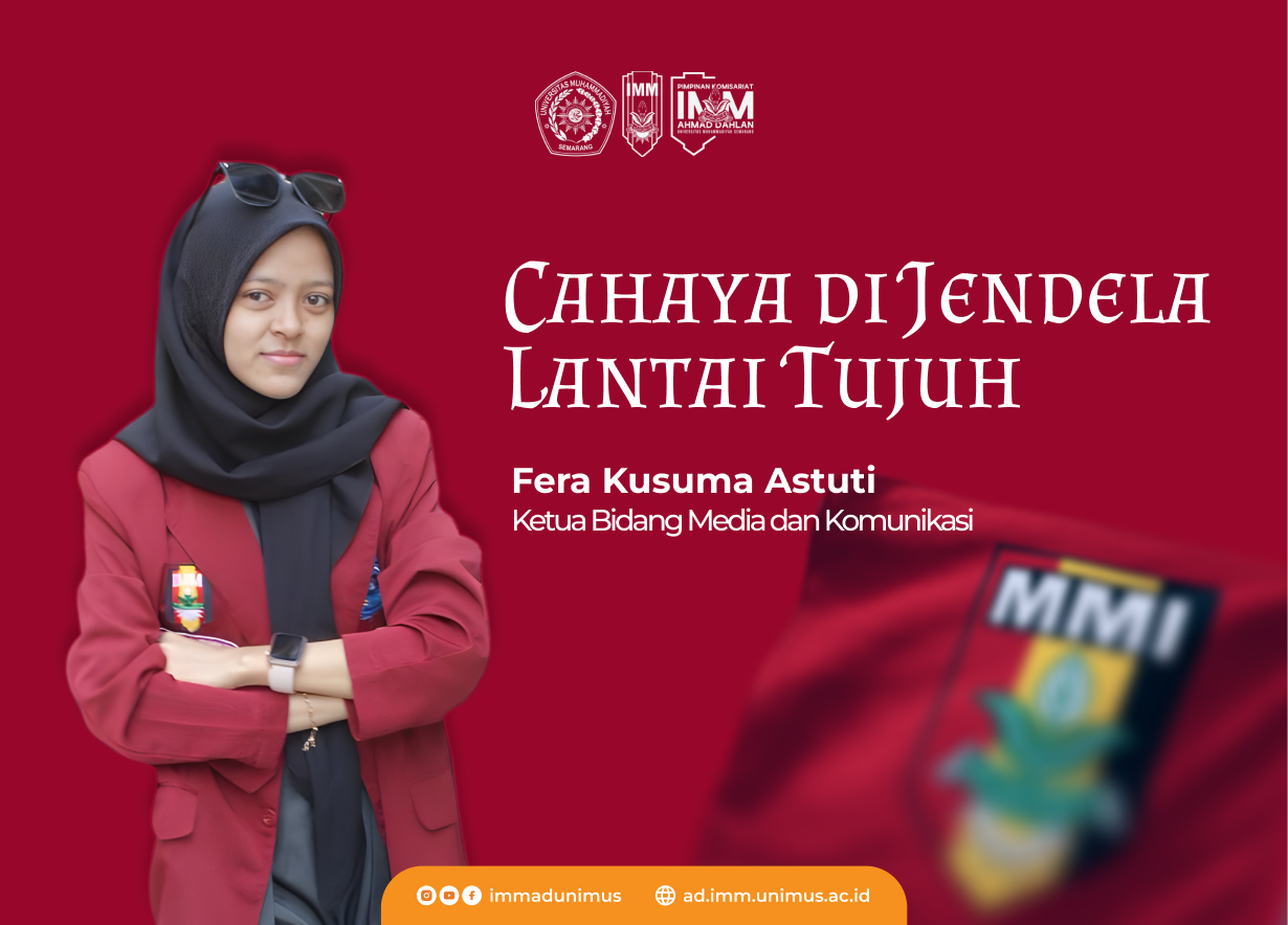 Cahaya di Jendela Lantai Tujuh adalah cerita inspiratif kader IMM Ahmad Dahlan Universitas Muhammadiyah Semarang (UNIMUS) tentang perjuangan menyeimbangkan tanggung jawab akademik dan organisasi. Kisah ini menggambarkan bagaimana seorang mahasiswa belajar membangun sinergi antara dunia kampus dan pergerakan kaderisasi.