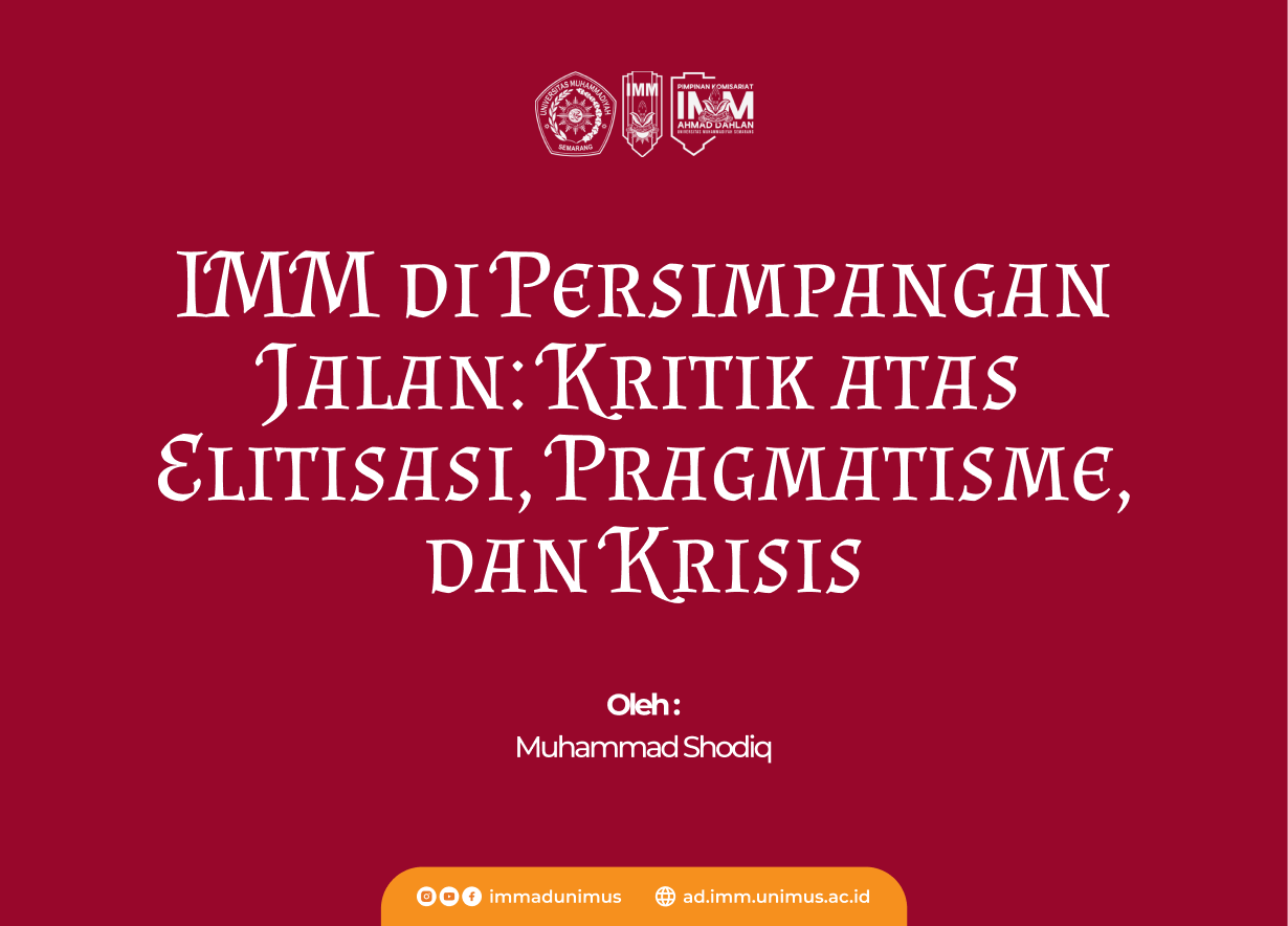 Ikatan Mahasiswa Muhammadiyah (IMM) sejak awal kelahirannya diproyeksikan sebagai organisasi kader yang berwatak intelektual, kritis, dan berpihak pada kepentingan umat. Tri Kompetensi Dasar IMM yaitu religiusitas, intelektualitas, dan humanitas menjadi fondasi ideologis yang menempatkan IMM bukan sekadar sebagai organisasi kemahasiswaan, melainkan sebagai ruang pembentukan kesadaran kritis dan keberanian moral. Dalam realitas hari ini, IMM justru berada di persimpangan jalan antara tetap setia pada cita-cita ideologisnya atau tergelincir dalam arus pragmatisme dan elitisasi kekuasaan.