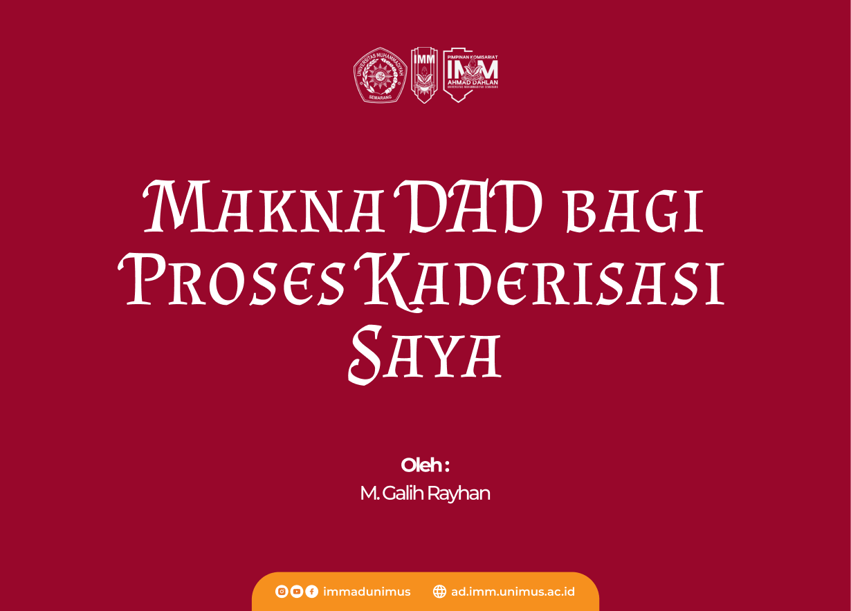 Namun dari situ saya mulai menyadari bahwa DAD adalah awal dari sebuah proses, bukan ukuran keberhasilan seseorang dalam kaderisasi. Ketidakpahaman yang saya alami justru menyadarkan saya bahwa kaderisasi IMM menuntut kesediaan untuk terus belajar dan berproses, bukan sekadar langsung mengerti. Bagi saya, makna DAD terletak pada kesadaran untuk menerima keterbatasan diri dan tetap melangkah dalam proses kaderisasi ke depan.